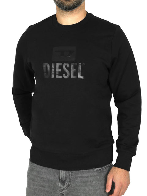 Men's regular-fit sweater from Diesel with a round neck and a unique tone-on-tone logo print on the chest. The monochrome look of the logo creates a sophisticated look that subtly highlights the typical Diesel character yet immediately catches the eye. Crafted from 100% finest cotton with a soft feel for maximum comfort. The model is 184 cm tall and wears a size M.