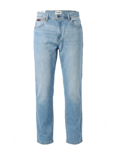 Die Hose verfügt über einen klassischen Reißverschluss und den authentischen Wrangler-Lederaufnäher auf der Gesäßtasche.